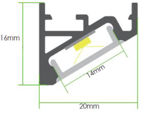 Listaan mahtuu maximissaan 14mm leveät led-nauhat. Led nauhaliittimet joiden leveys on 12mm ja paksuus 3mm, mahtuu listan sisään.