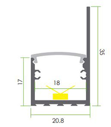 Listaan mahtuu maximissaan 18mm leveät led-nauhat. Kaikki Led nauhaliittimet mahtuu listan sisään.